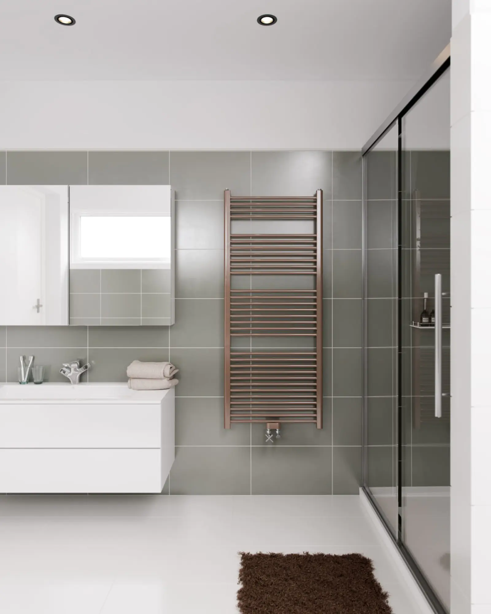 De Rondo Lux is, zoals de naam al doet vermoeden, een luxe badkamerradiator. Met zijn rechte ronde elementen is er voldoende ruimte om handdoeken te verwarmen. De Rondo Lux is opgebouwd uit twee verticale D-vormige collectorbuizen met daartussen rechte ronde horizontale buizen. Indien de 50mm onderaansluiting niet wordt gebruikt dan geeft het onderste element minder warmte af dan de overige elementen. De ophanging bestaat uit metalen consoles en is in de kleur van de radiator. Deze worden samen met het ontluchtingsventiel meegeleverd. De radiator wordt na een grondige roestwerende voorbehandeling voorzien van een poeder-epoxylaag. Deze radiator wordt standaard geleverd met de witte thermostaat EL.BEDIENING.08.