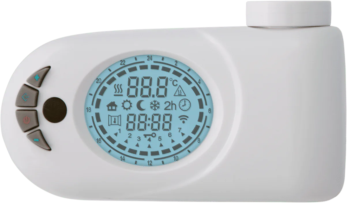 Let op! Houd er rekening mee dat de kleur mogelijk afwijkt van wat op de afbeelding wordt getoond. De bediening van deze thermostaat is uiterst gebruiksvriendelijk. Deze is voorzien van de mogelijkheid voor het instellen van een week- of dagprogramma. Ook kun je er voor kiezen of de thermostaat continue in bedrijf is of slechts voor de duur van twee uur. Een ‘open-raam detectie’, waarbij de radiator automatisch in stand-by gaat, een ‘antivries’ functie en een ECO functie zorgen voor extra comfort en besparen energie.