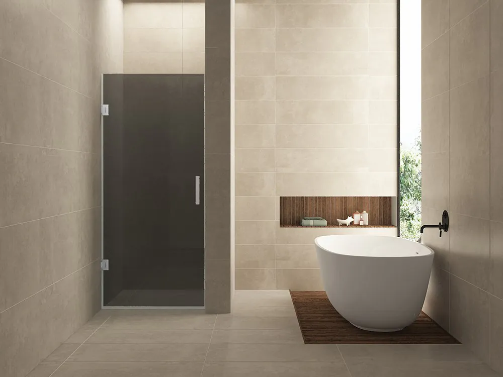 Net als bij de Less inloopdouches hebben we met de Less nisdeuren van Wiesbaden Sanitair een serie opgenomen onder de noemer: Less is more. Door gebruik te maken van 2 kleine scharnieren en een rubber D-profiel dat aansluit op de muur, zijn de muur- en aanslagprofielen van de “normale nisdeuren” vervallen. Hierdoor blijft er een groter glasoppervlak over. Het scharnier van de Less nisdeur heeft een liftende werking zodat ook met afschot in de vloer de deur gewoon geopend kan worden. Daarnaast zorgt de liftfunctie ervoor dat het afwateringsprofiel onderaan de deur minder over de grond schuurt en daardoor minder snel slijt. Deze nisdeur is omkeerbaar en kan zowel naar binnen als naar buiten worden geopend. Hij wordt geleverd inclusief metalen deurgreep en scharnierset. De Less nisdeur is gemaakt van gehard veiligheidsglas en is met NANO-coating afgewerkt.