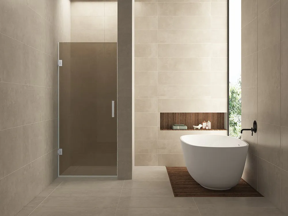 Net als bij de Less inloopdouches hebben we met de Less nisdeuren van Wiesbaden Sanitair een serie opgenomen onder de noemer: Less is more. Door gebruik te maken van 2 kleine scharnieren en een rubber D-profiel dat aansluit op de muur, zijn de muur- en aanslagprofielen van de “normale nisdeuren” vervallen. Hierdoor blijft er een groter glasoppervlak over. Het scharnier van de Less nisdeur heeft een liftende werking zodat ook met afschot in de vloer de deur gewoon geopend kan worden. Daarnaast zorgt de liftfunctie ervoor dat het afwateringsprofiel onderaan de deur minder over de grond schuurt en daardoor minder snel slijt. Deze nisdeur is omkeerbaar en kan zowel naar binnen als naar buiten worden geopend. Hij wordt geleverd inclusief metalen deurgreep en scharnierset. De Less nisdeur is gemaakt van gehard veiligheidsglas en is met NANO-coating afgewerkt.