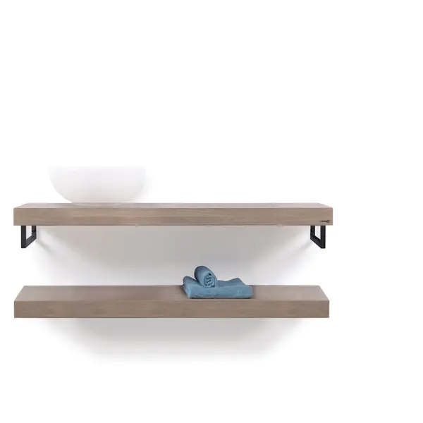 Looox Wooden Base Shelf Duo 120 cm, eiken old grey, Handdoekhouders mat zwart