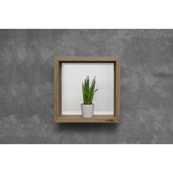 Looox Wooden BoX 30x30 cm, massief eiken old grey, achterplaat mat wit