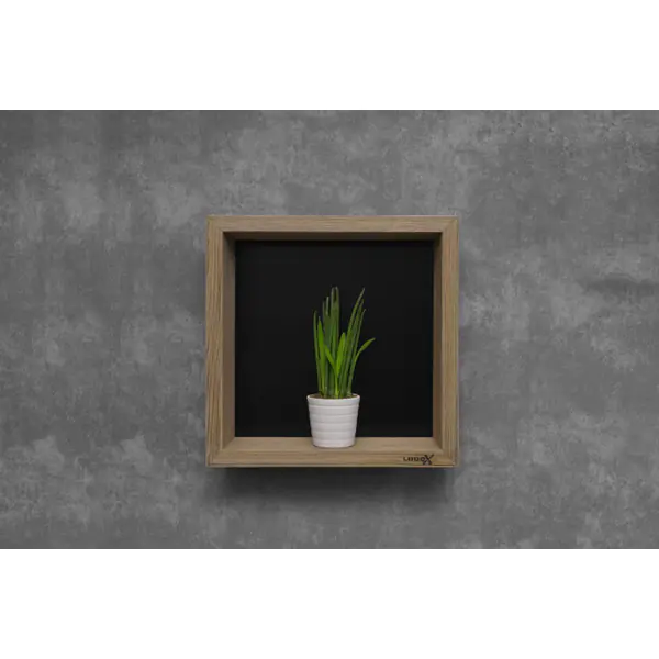 Looox Wooden BoX 30x30 cm, massief eiken old grey, achterplaat mat zwart