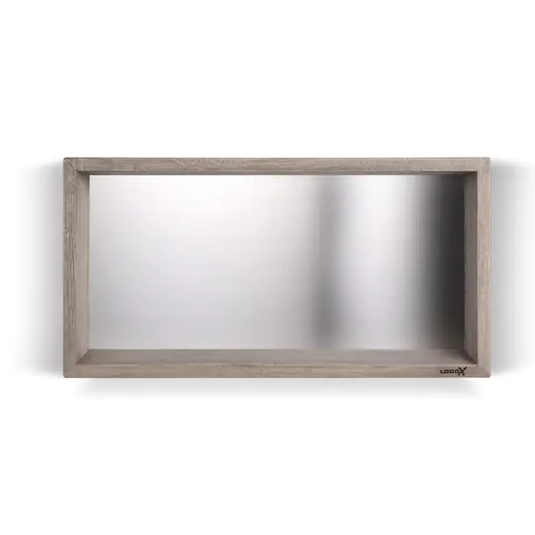 Looox Wooden BoX 60x30 cm, massief eiken old grey, achterplaat geborsteld rvs