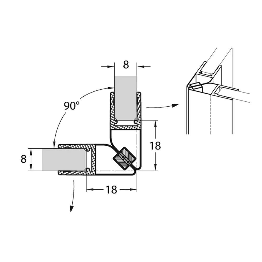 Magneetprofiel TMS-001 2010 hg t.b.v. aanslagzijde 90 graden zijwand/draaideur 6-8mm transparant
