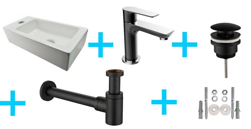 Mini Rhea one-pack fontein van Wiesbaden heeft alles wat u nodig heeft om uw toiletfontein te installeren. Het pakket bestaat uit bevestigingsmateriaal, de Casma opbouwkraan uit het assortiment van Wiesbaden, een fontein, een clickwaste en een sifon in dezelfde lijn. Een one-pack is niet alleen praktisch maar ook voordeliger in prijs. Zowel verkrijgbaar met het kraangat aan de linker-als aan de rechterkant. Kleur: mat zwart.
