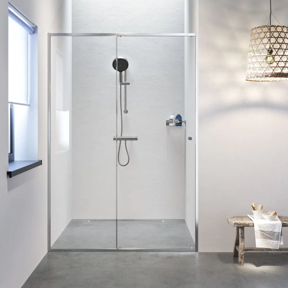 Sealskin Contour Schuifdeur voor nis 140x200 cm, 6 mm helder veiligheidsglas met antikalklaag RVS geborsteld
