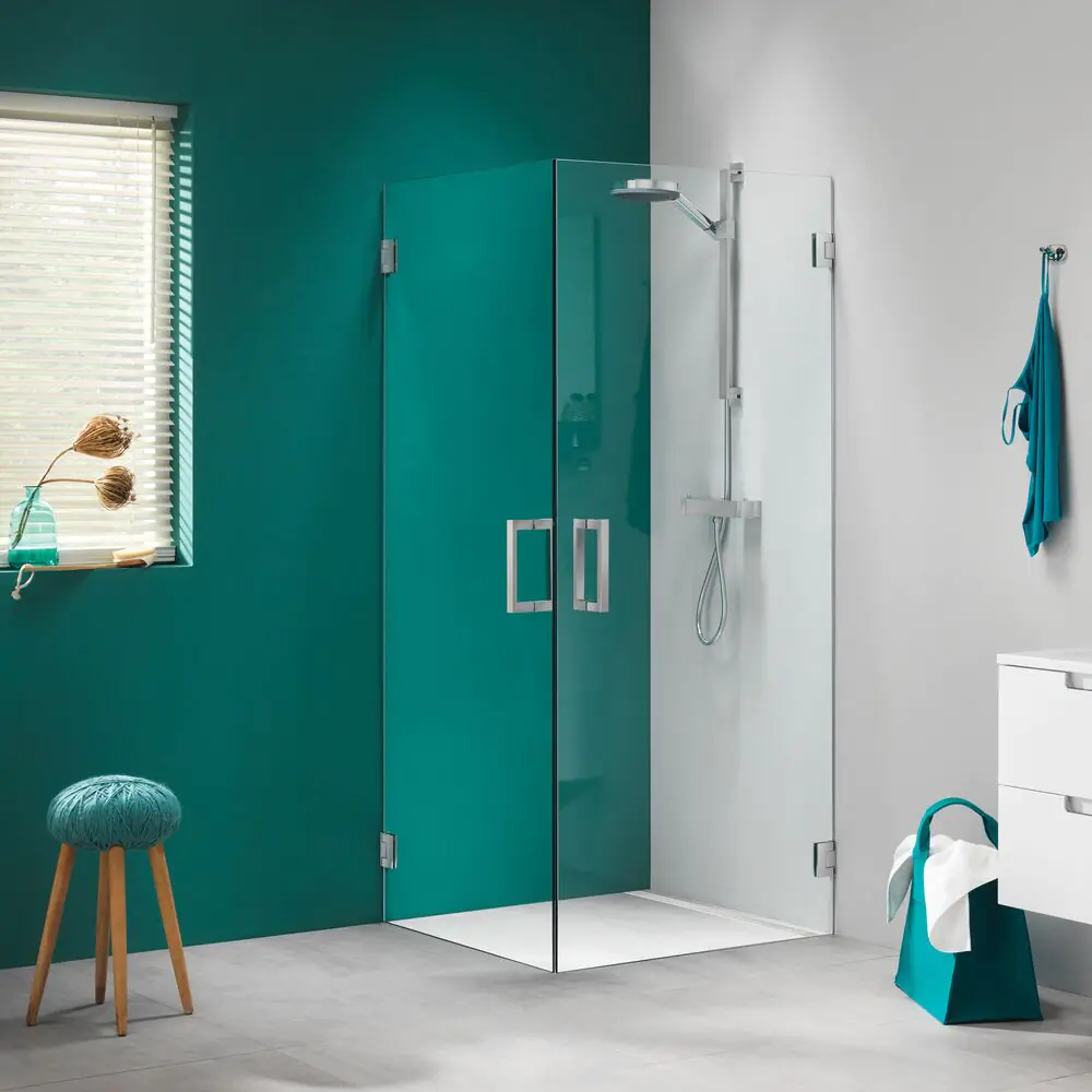 Deze draaideur, gecombineerd met een tweede draaideur (hoekinstap), maken een transparante en ruime douche. Het veiligheidsglas van maar liefst 8 mm is voorzien van een antikalk laag waardoor kalk en viezigheid zich minder snel zal hechten. De scharnieren van I AM zijn zelfsluitend. Dat zorgt ervoor dat de deur automatisch naar zijn nulpunt gaat; hij gaat dus vanzelf dicht!