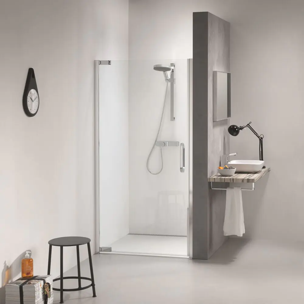 Sealskin Impact Swingdeur, 1000 mm voor plaatsing tussen 2 muren. Chroom/zilver hoogglans, 8 mm helder veiligheidsglas.