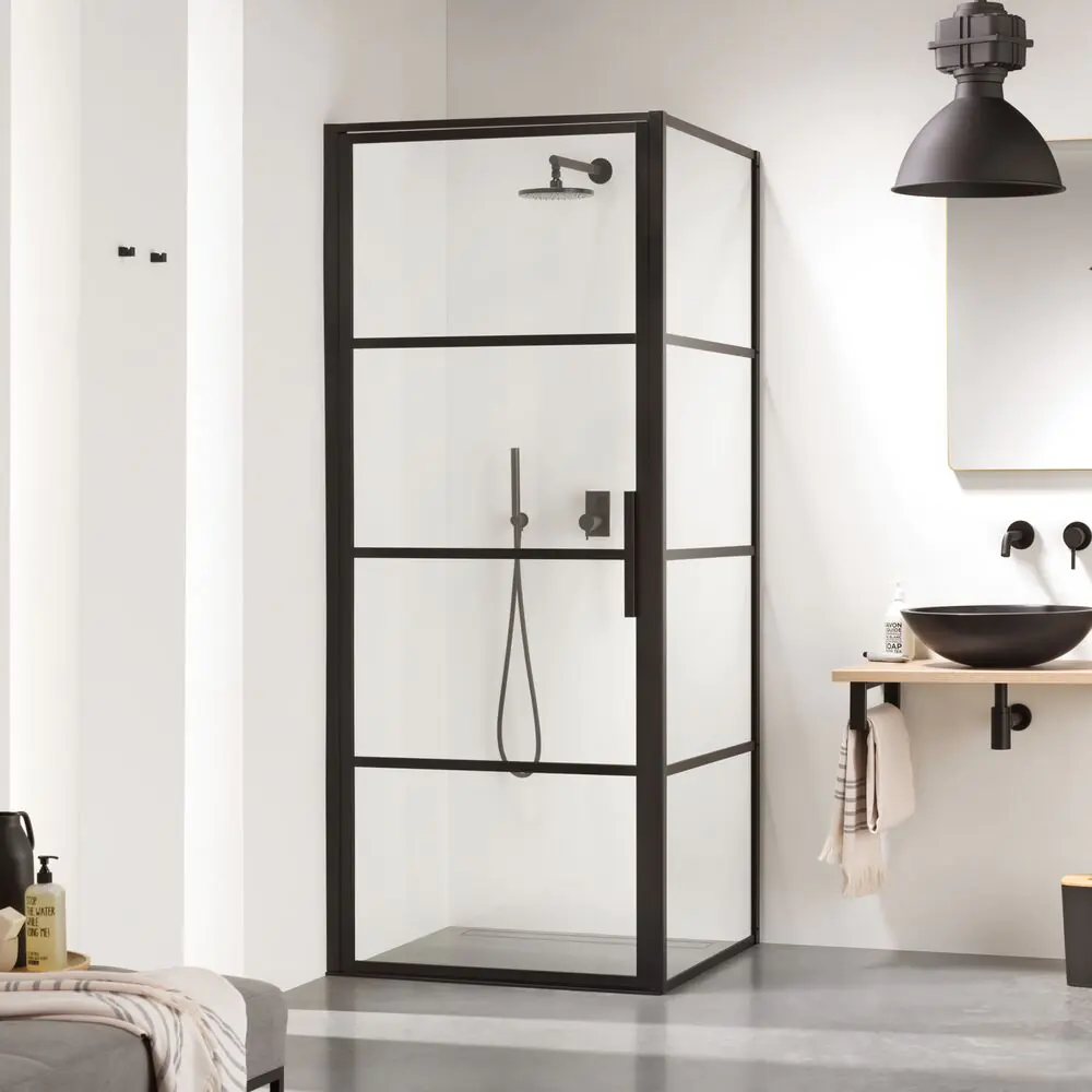 Soho® is een serie douchedeuren en inloopdouches met matzwarte kaders. Samen met de subtiel toegepaste industriële bouten is de inspiratie zichtbaar gebleven. Met bijzonder veel aandacht voor detail, zoals de verborgen bevestiging van de steun, is deze industriële look succesvol vertaald naar een moderne douche.