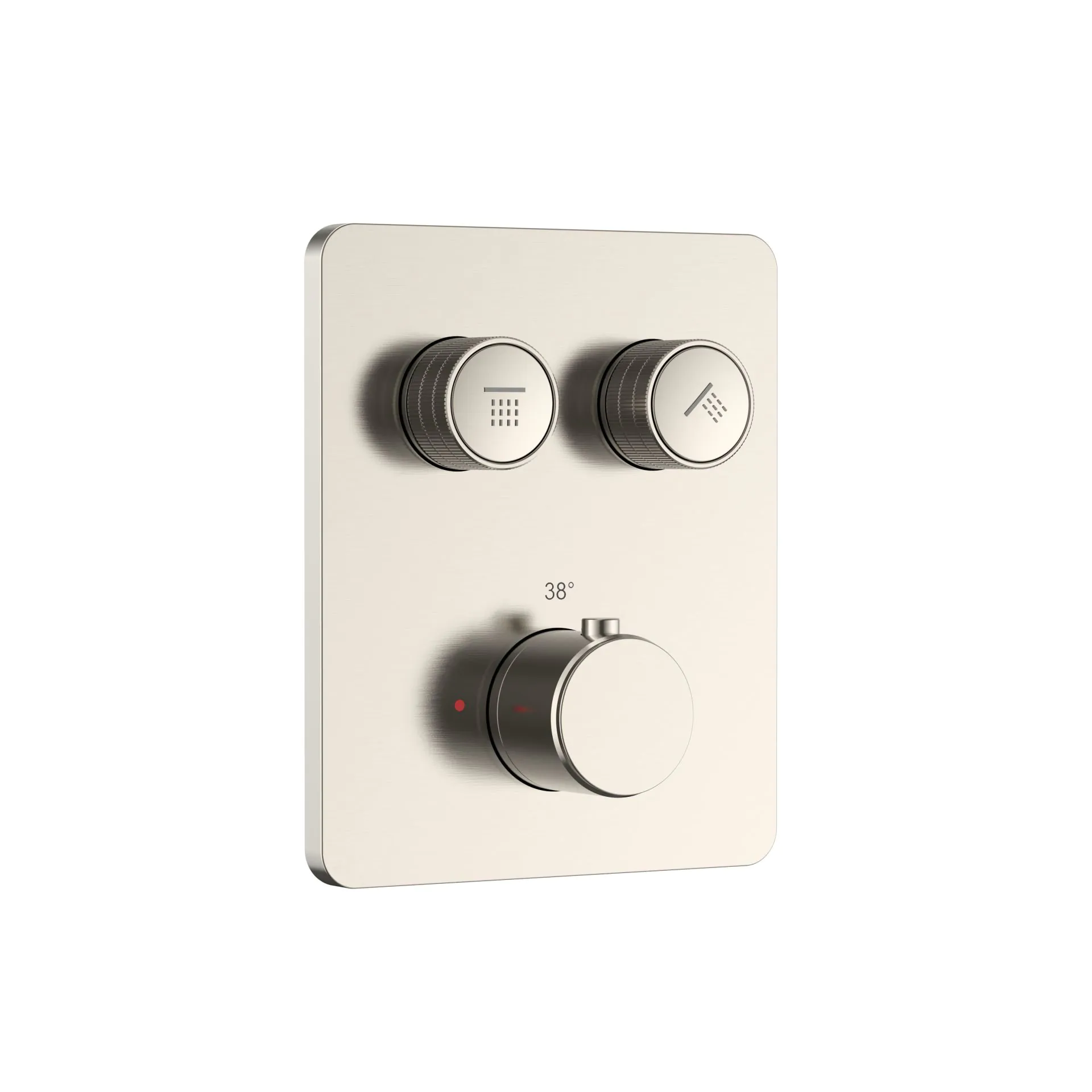 De thermostatische regeling garandeert een constante en veilige watertemperatuur, terwijl de drukknoppen met verfijnde ribbelstructuur zorgen voor comfortabel gebruik en een subtiele, luxueuze uitstraling. Het geborsteld RVS zorgt bovendien voor een duurzame, krasbestendige en onderhoudsvriendelijke afwerking.