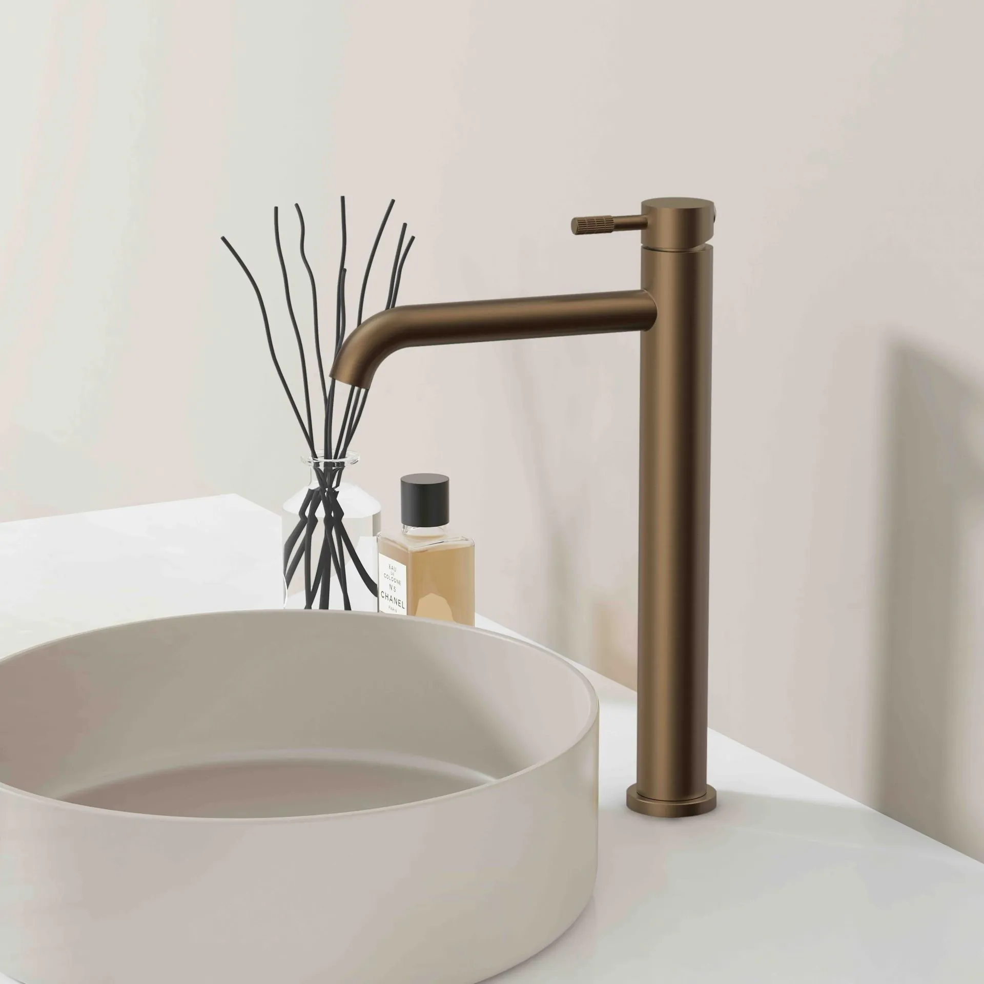 De Stria Wastafelmengkraan Hoog is een bruin brons wastafelkraan van rvs met pvd afwerking. Deze kwalitatieve kraan van Aloni combineert stijlvol design met duurzaamheid.