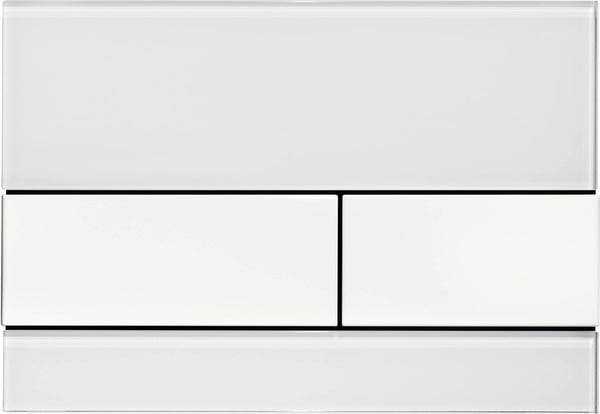 Bedieningsplaat voor TECE reservoir voor front- of planchetbediening. Vlakke glazen bedieningsplaat met twee geveerde kanteltoetsen. Geschikt voor vlakke inbouw in combinatie met een wc-inbouwraam voor vlakke inbouw (bijv. best.-nr. 9240649). Te combineren met inworpschacht voor reinigingstabletten.