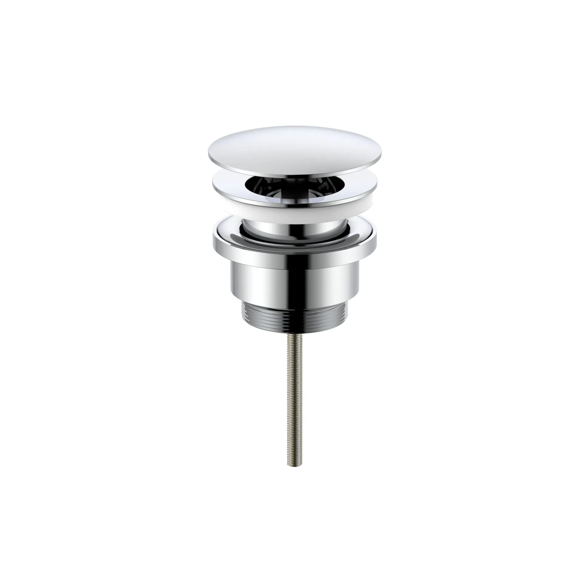 De Uniforma afvoerplug – altijd open – in chroomkleurige afwerking is een stijlvolle en functionele oplossing voor wastafels en fonteinen zonder overloop. De vaste doorlaat zorgt voor een continue waterafvoer, zodat er geen risico is op overstroming, zelfs als de kraan per ongeluk openblijft.